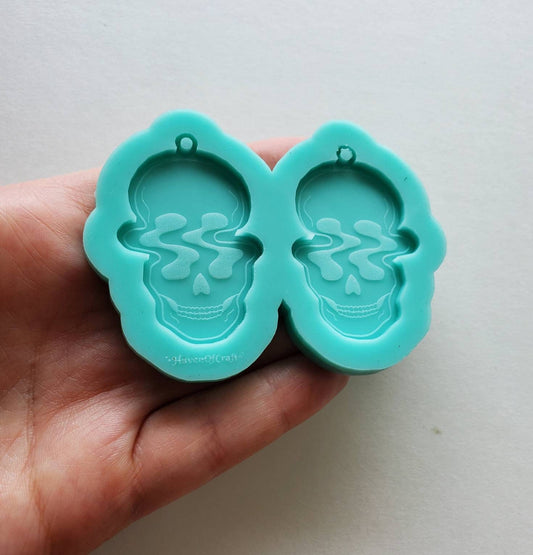 Made to order - Trippy Skulls shiny earring silicone mold - made with acrylic blank