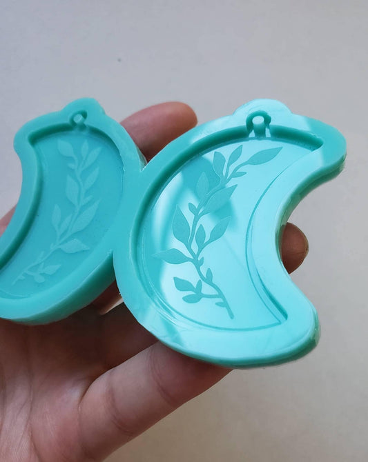 Made to order -Shiny moon with leafs earring mold- 2 size available