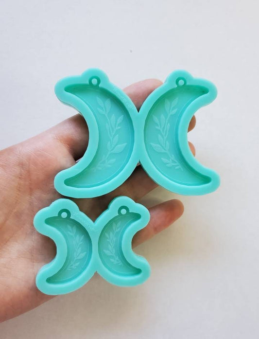 Made to order -Shiny thin moon with leafs earring mold- 2 size available