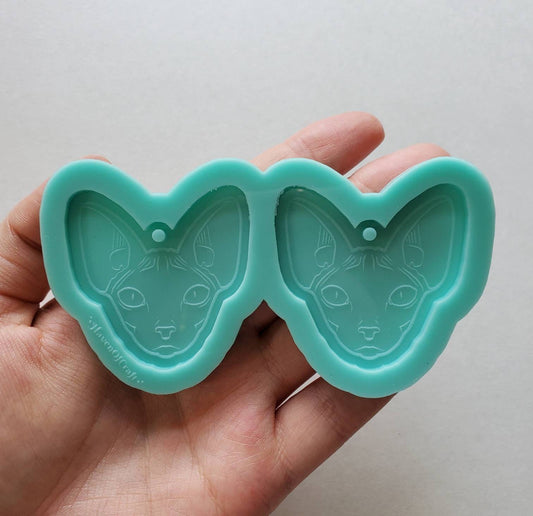 Made to Order -Sphynx cat face Shiny Silicone Earring Mold- Made with Acrylic Blanks
