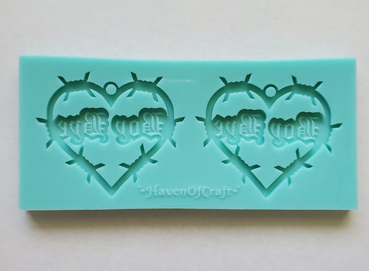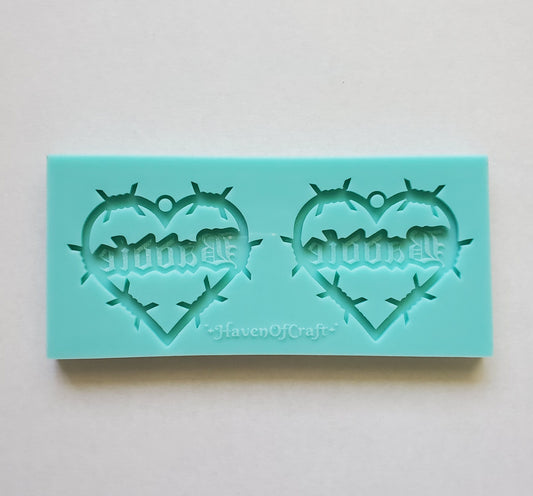 Made to Order - Boy Bye Barbed Wire Heart Earring Mold - shiny silicone mold