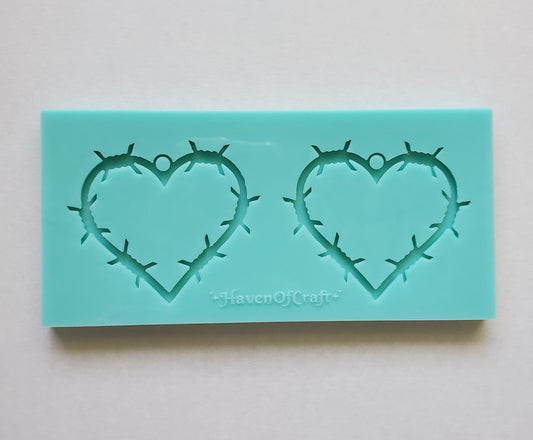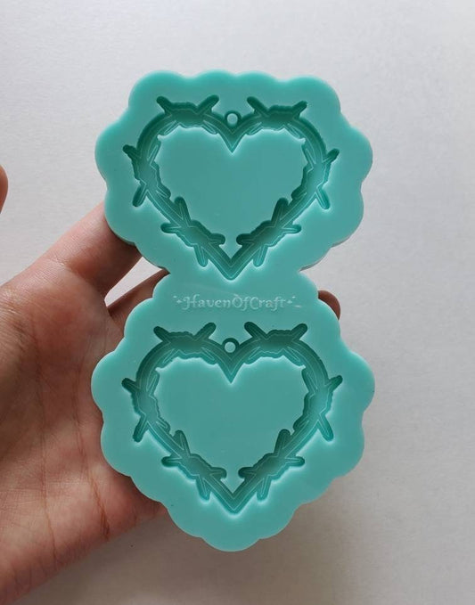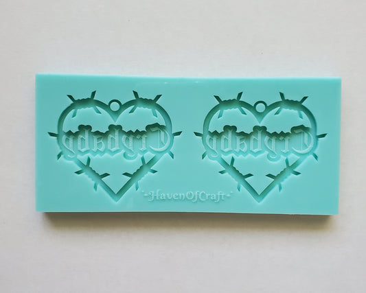 Made to Order - Barbed Wire Heart Earring shiny silicone mold - 2 sizes available