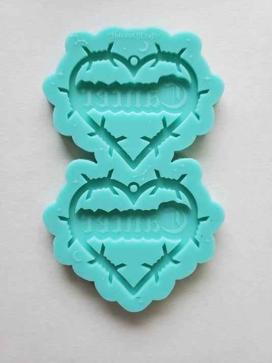 Made to Order - Crybaby Barbed Wire Heart Earring Mold - shiny silicone mold