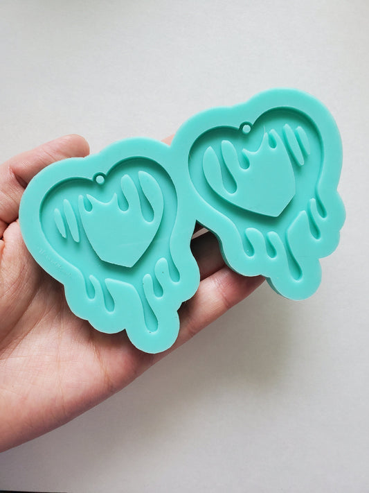 Made to order - Big Drip Heart earring mold - shiny silicone mold
