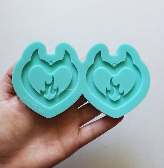 Made to Order - Flame Heart Earrings Mold - shiny silicone mold - 2 size available