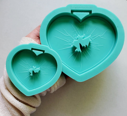 Made to Order - Broken Glass Heart Tsurikawa Silicone Mold 2 sizes - Made with Acrylic Blanks