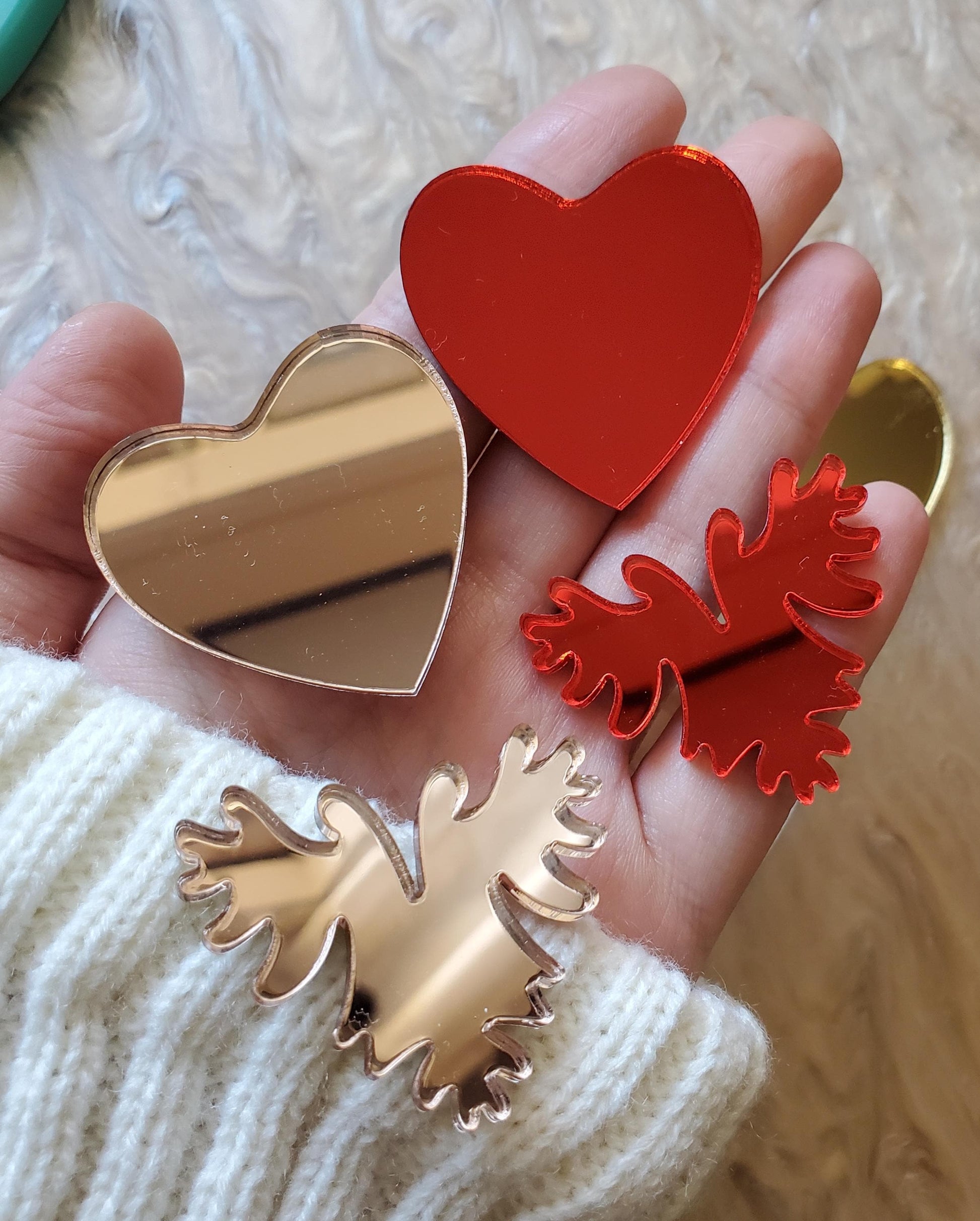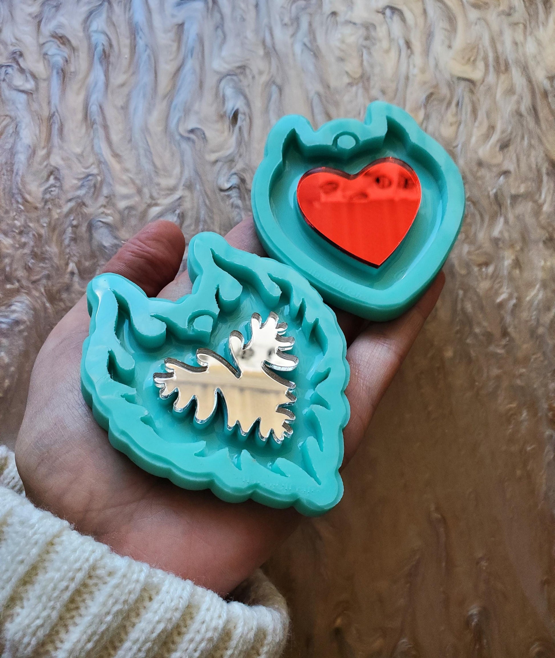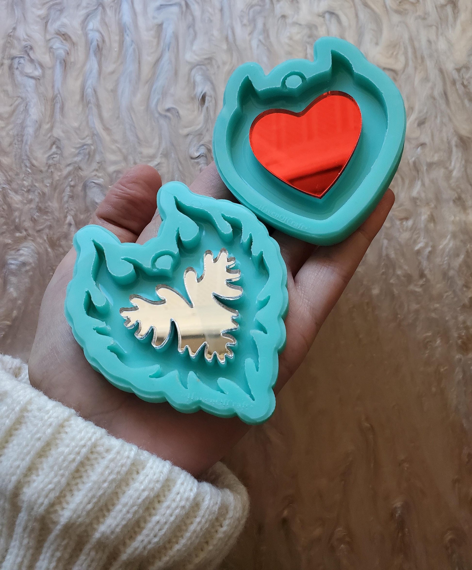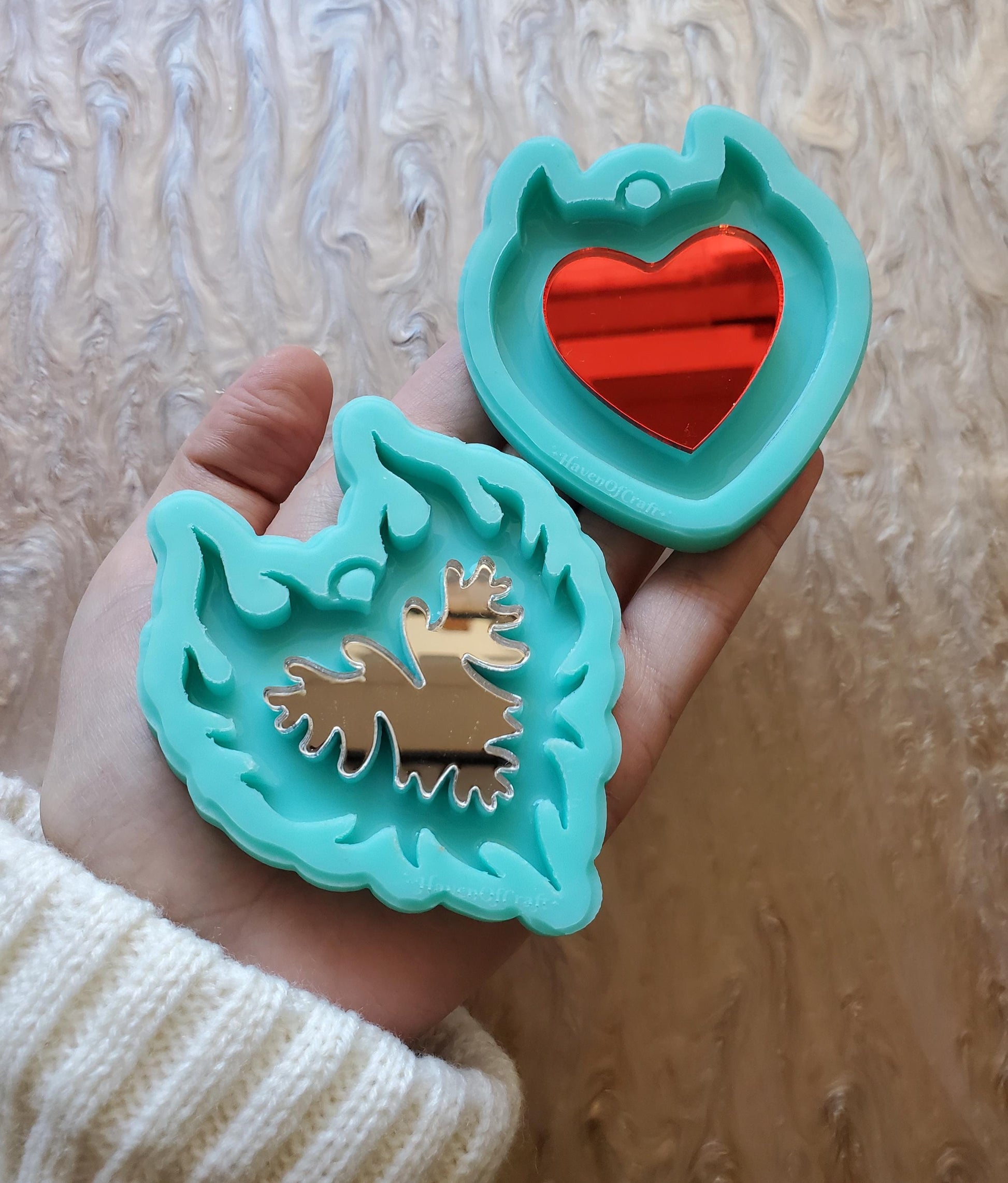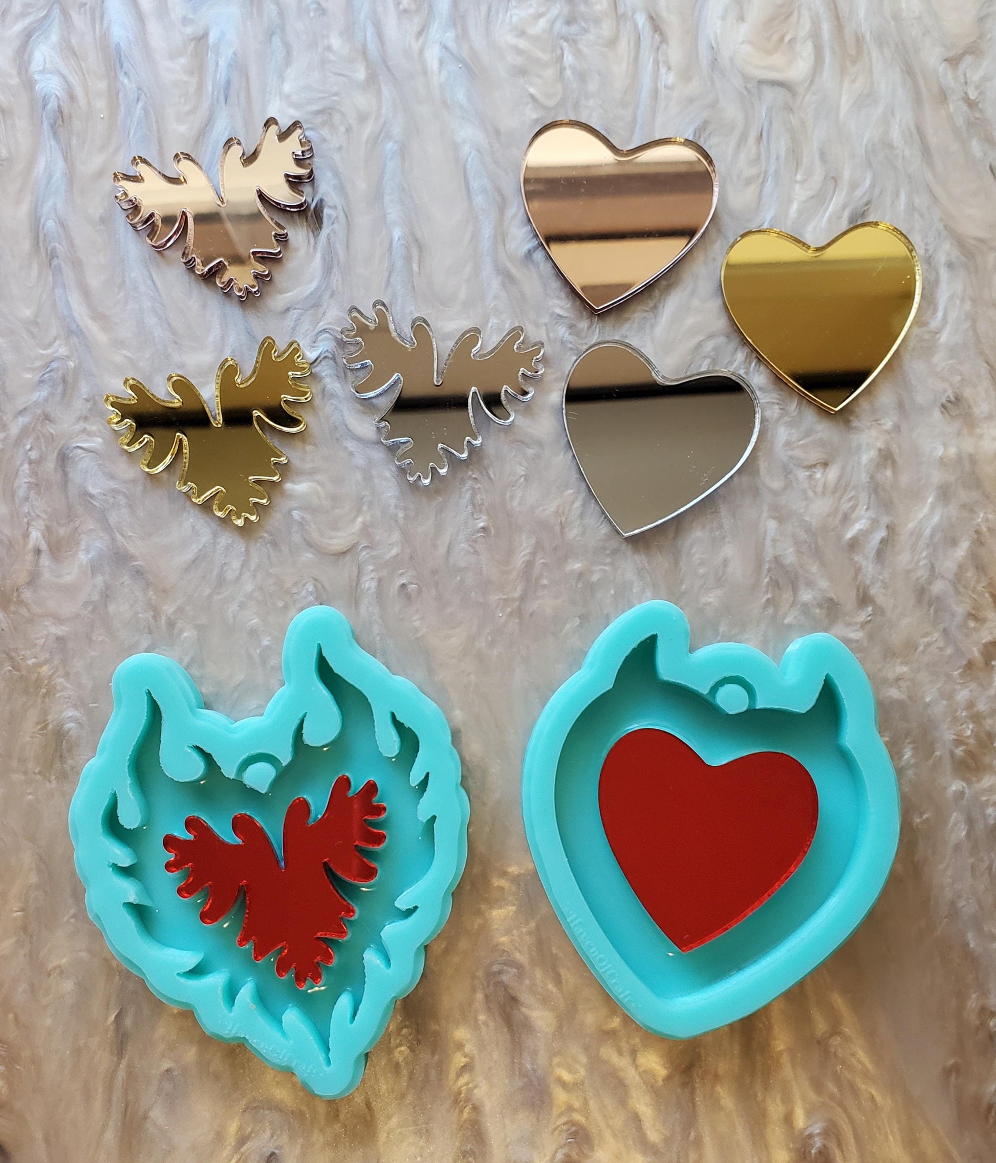 Flaming Heart or Horn Mirror Keychain/ 4 colors of mirror to choose from/ 2 Mold style to choose from -Made to order