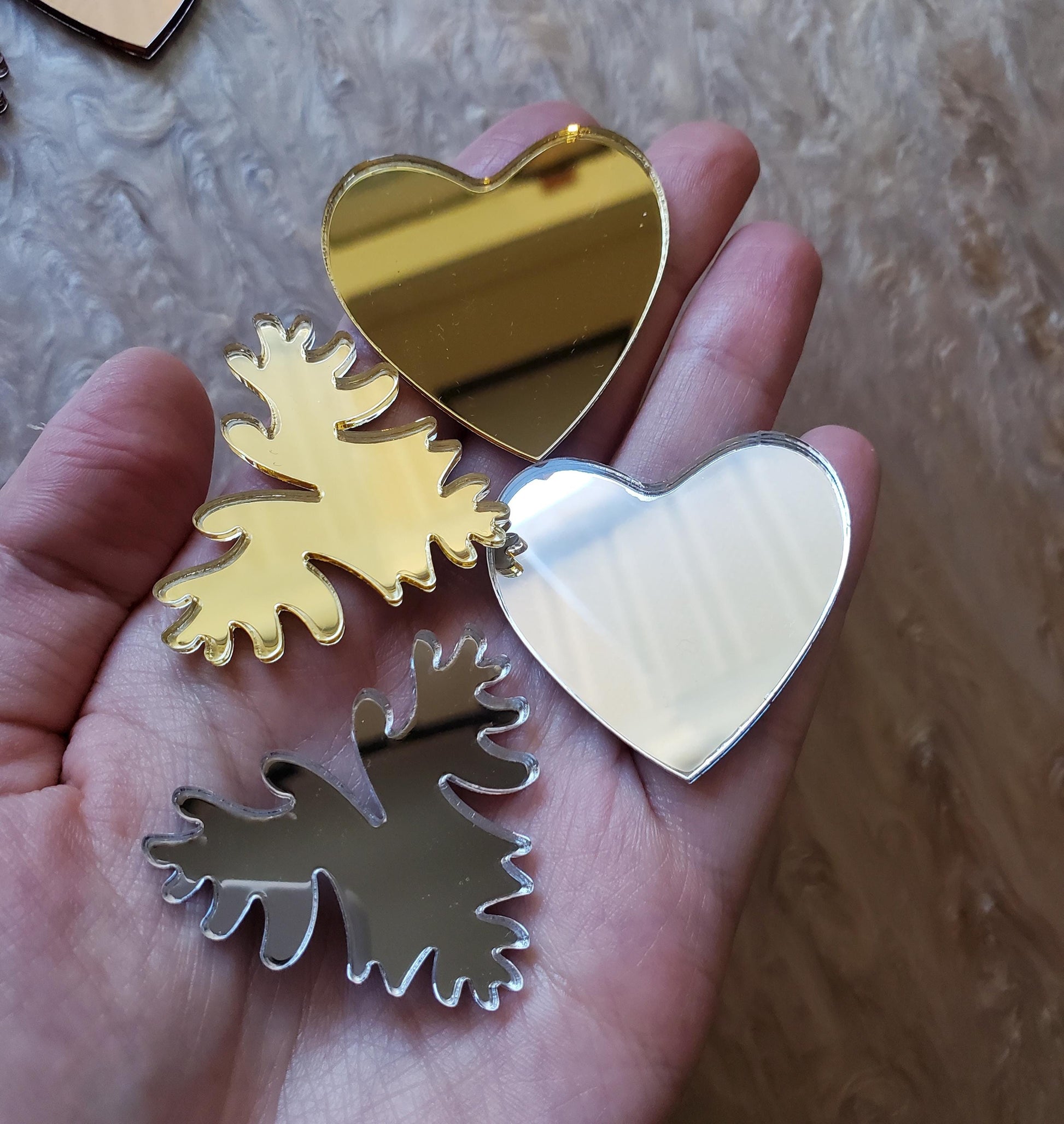 Made from a 3D print but the blank is pre-domed so will be very shiny when demolded , middle of the mold is left rough to help for better adherence of the mirror. Please note that you CAN’T use any type of glue to glue the mirror. Using wrong glue will RUIN your mirrors. We recommend using a thin layer of resin to stick the mirror. All our molds are handmade which mean that small imperfections might occur. Mirrors cut to fit the mold are sold in pack of (5). If you want to buy in bulk please send us a message.