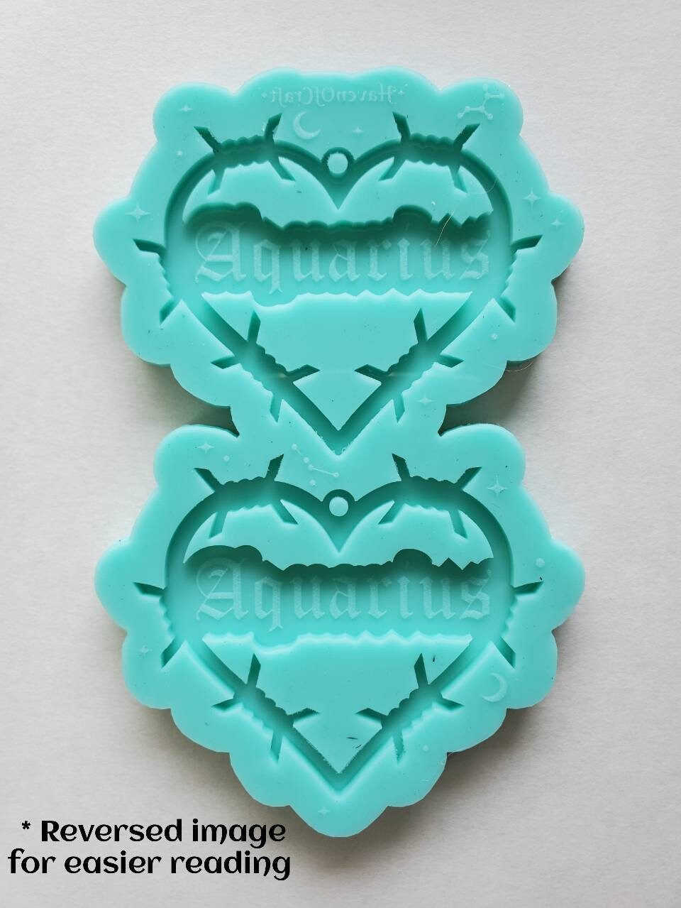 Made to order - Aquarius Barbed Heart earring silicone mold -shiny silicone mold