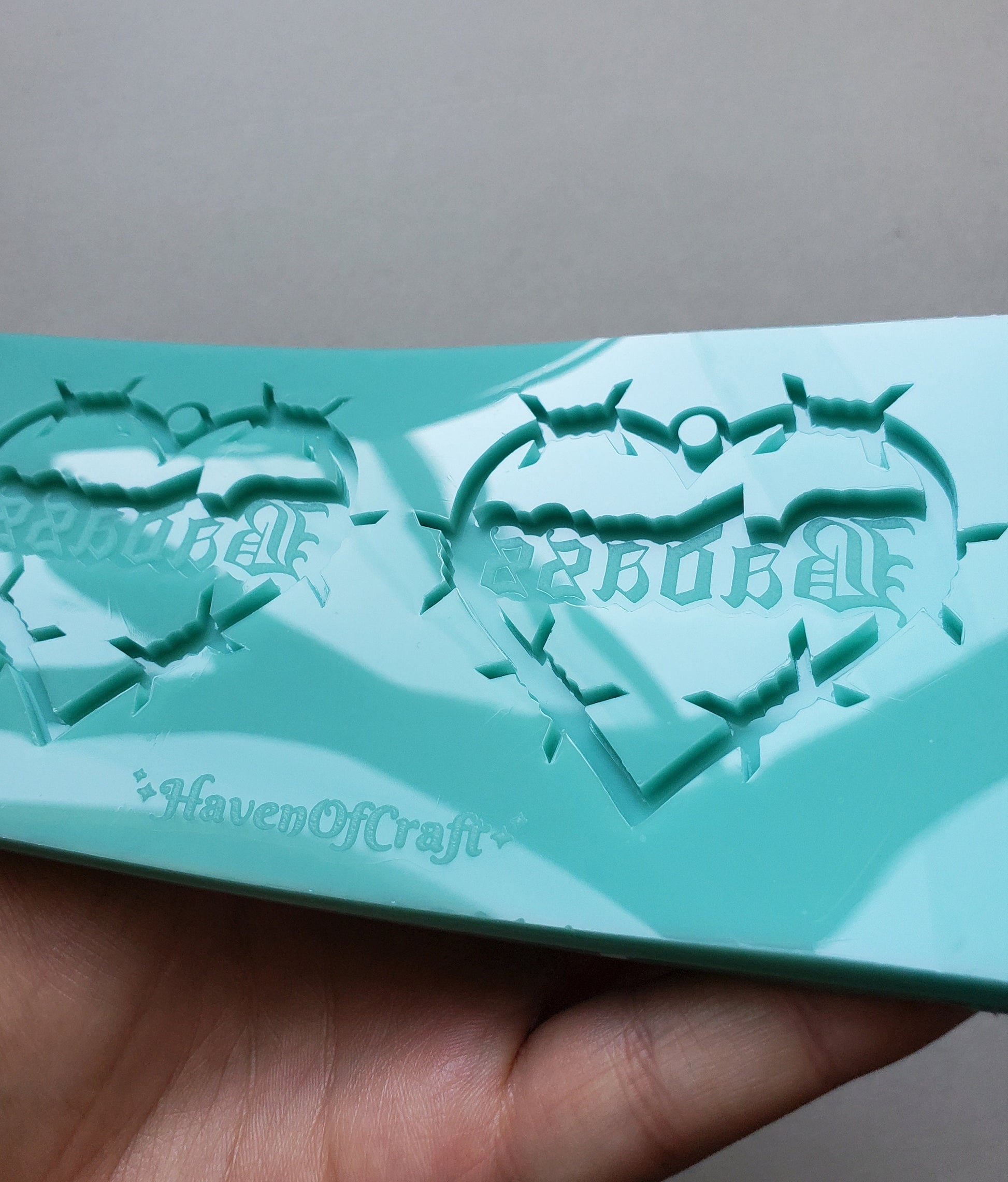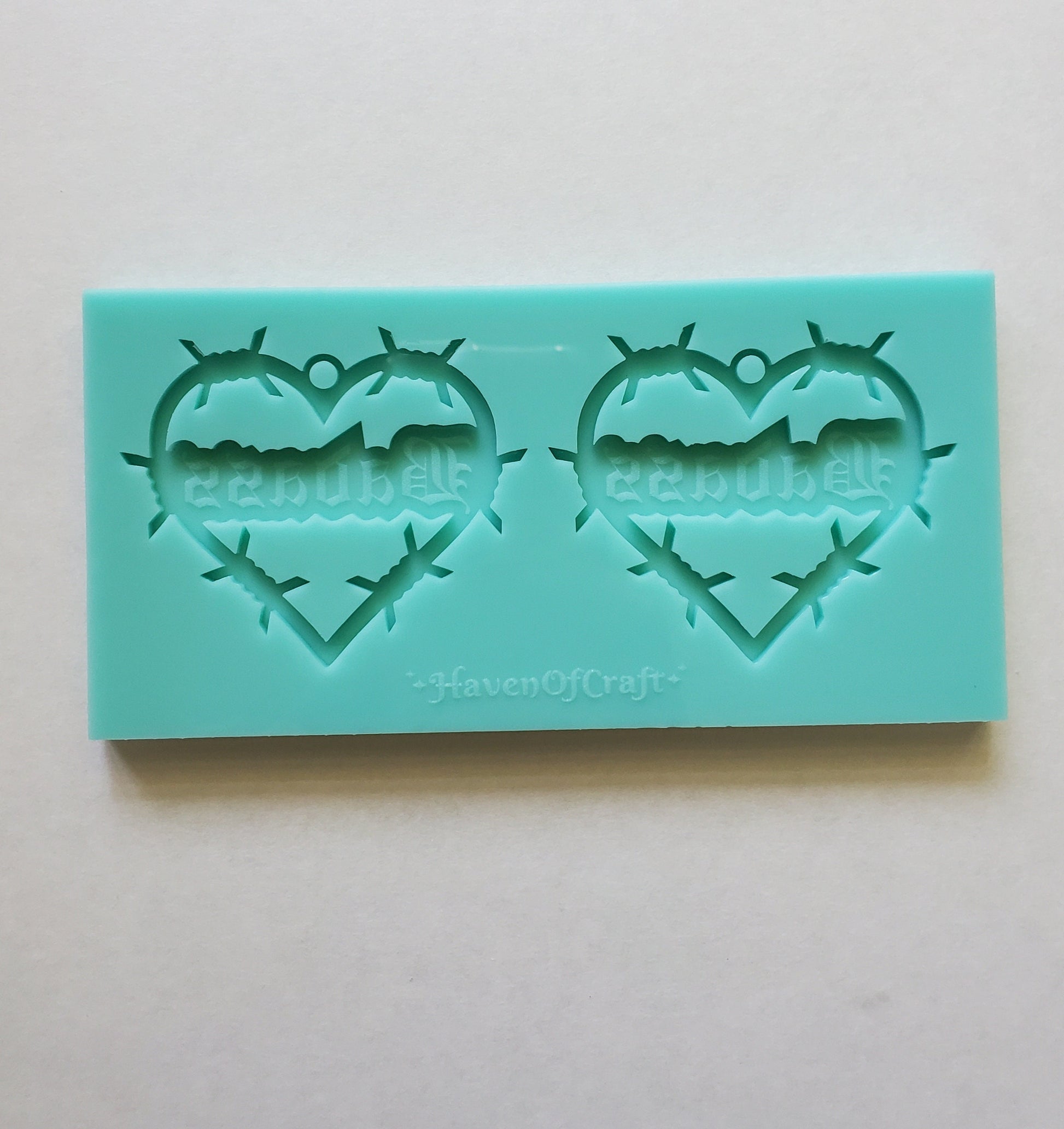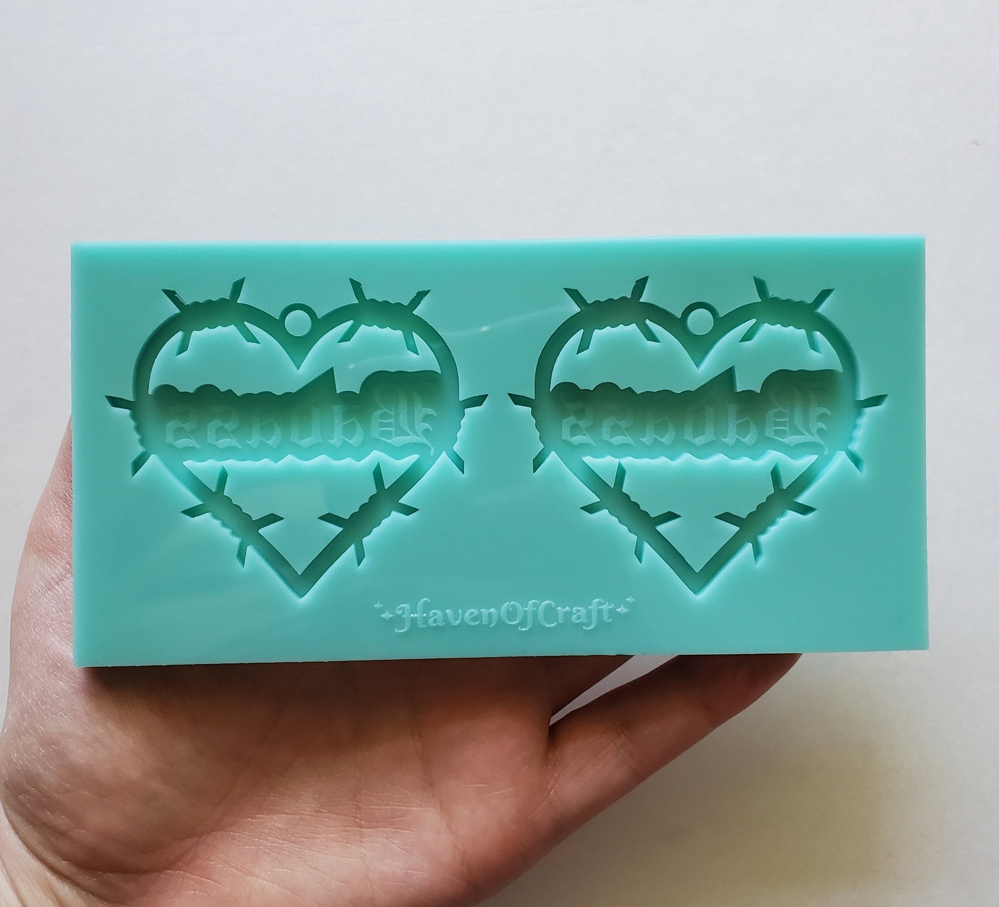 Made to Order - Badass Barbed Wire Heart Earring Mold - Shiny silicone mold