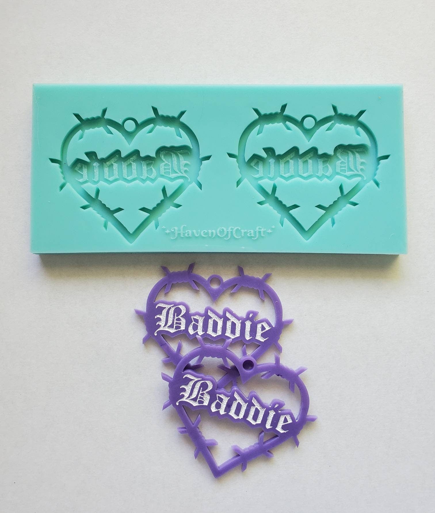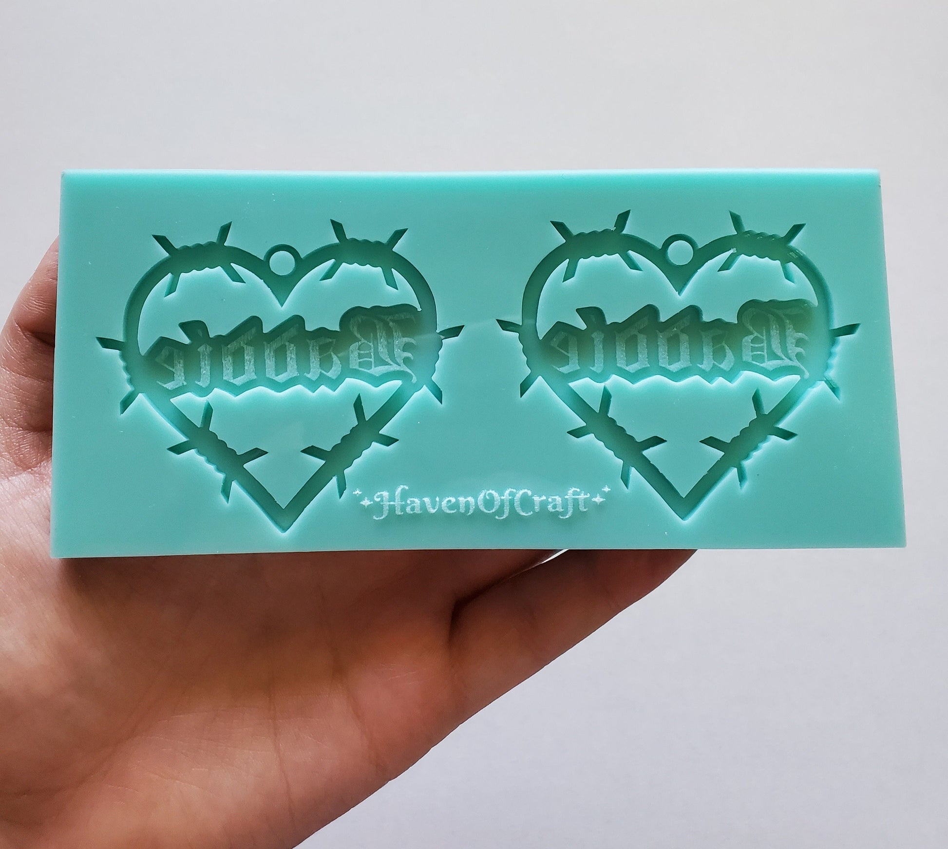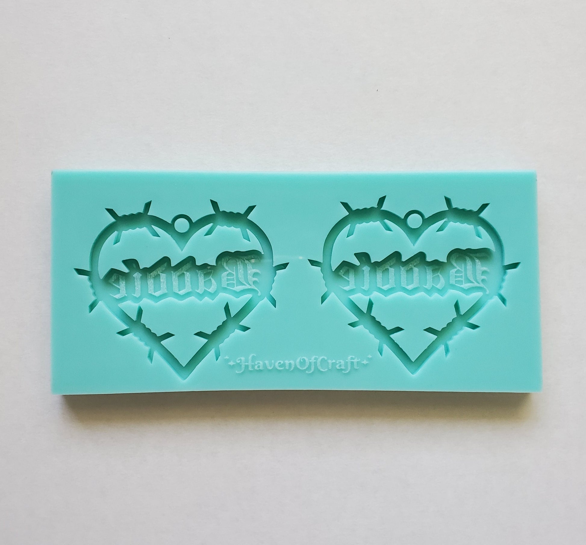 Made to Order - Baddie Barbed Wire Heart Earring Mold - shiny silicone mold