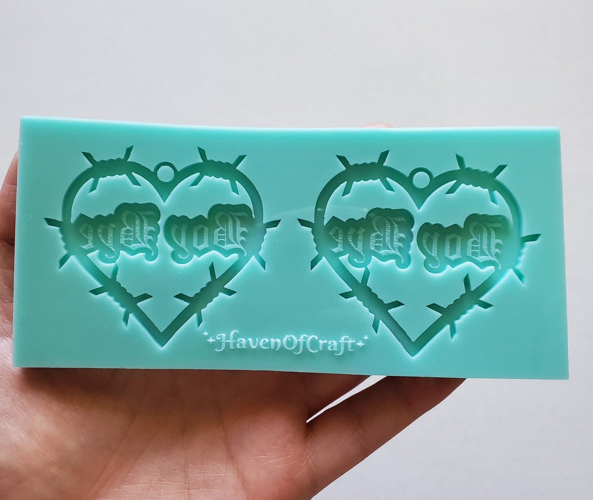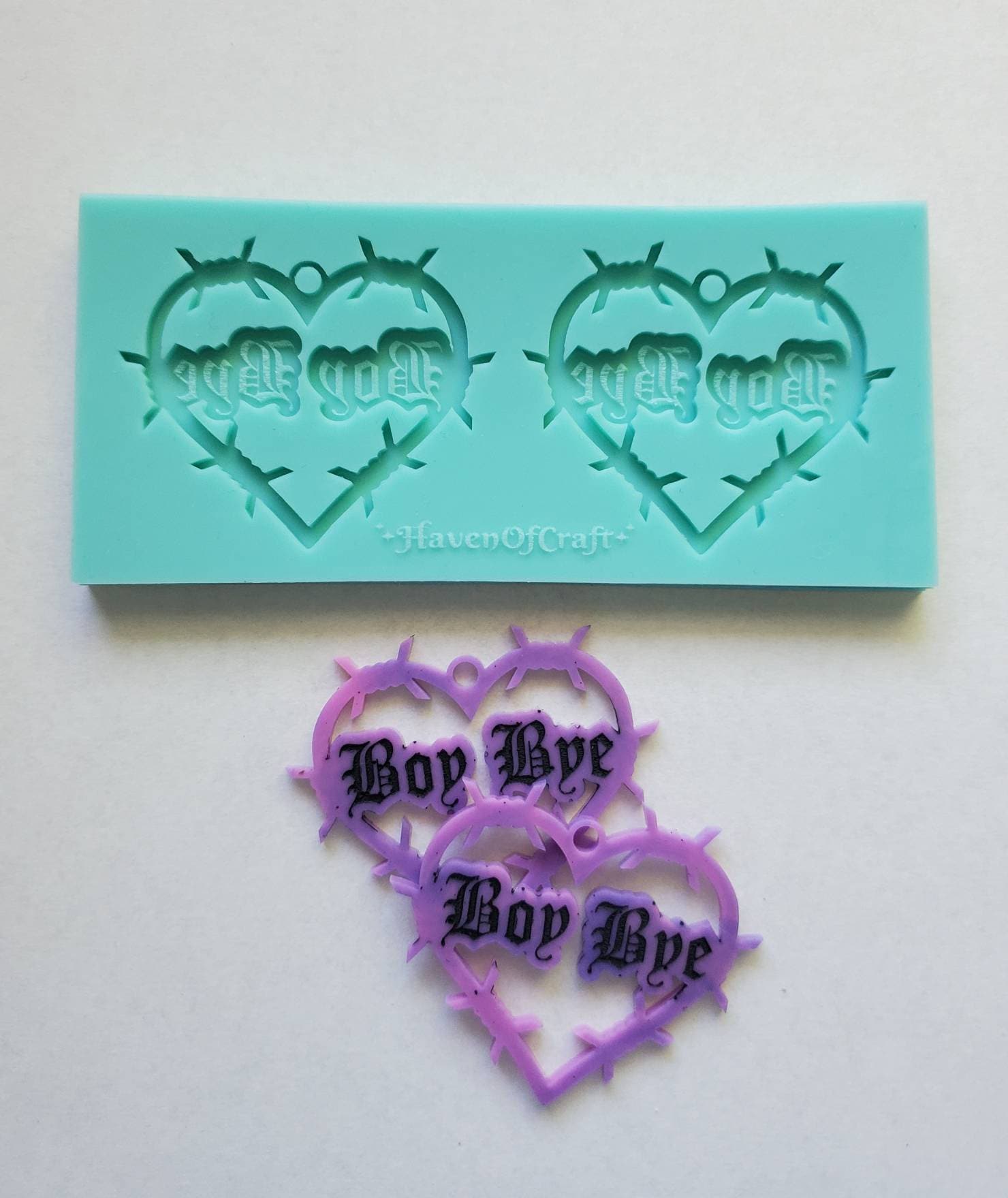 Made to Order - Boy Bye Barbed Wire Heart Earring Mold - shiny silicone mold