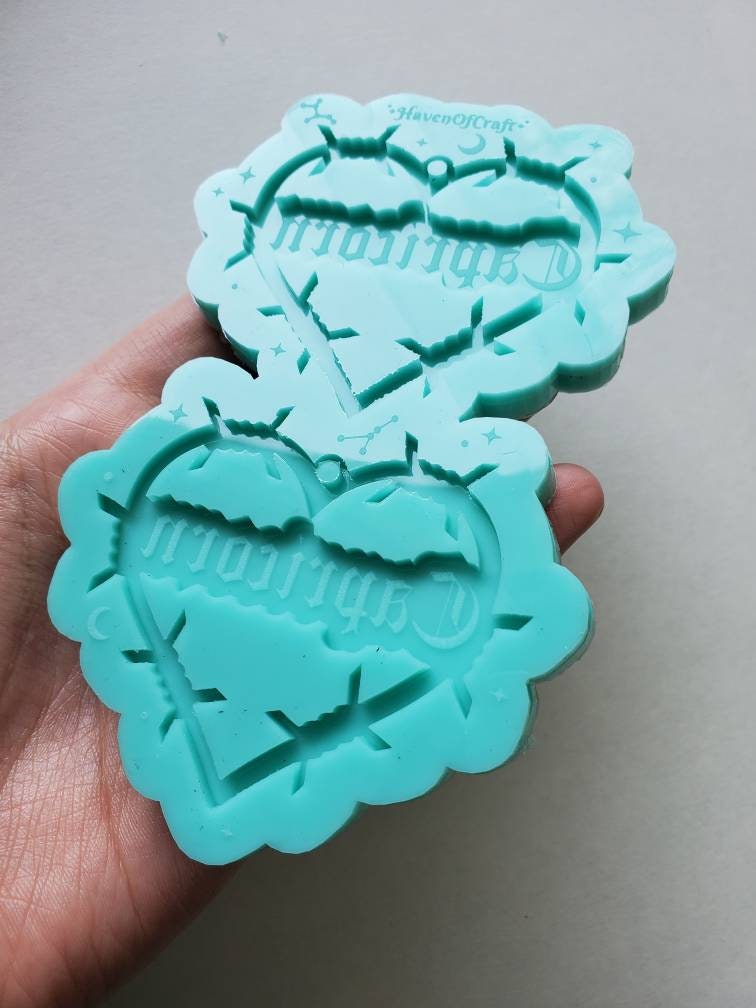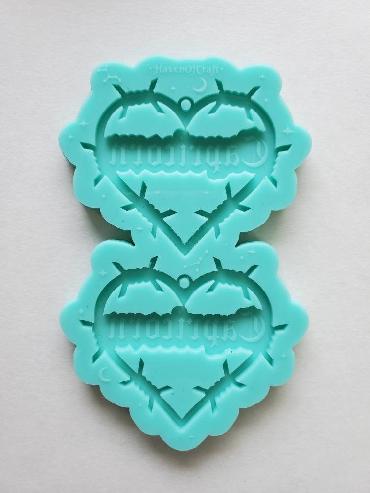 Made to order - Capricorn Barbed Heart earring silicone mold -shiny silicone mold