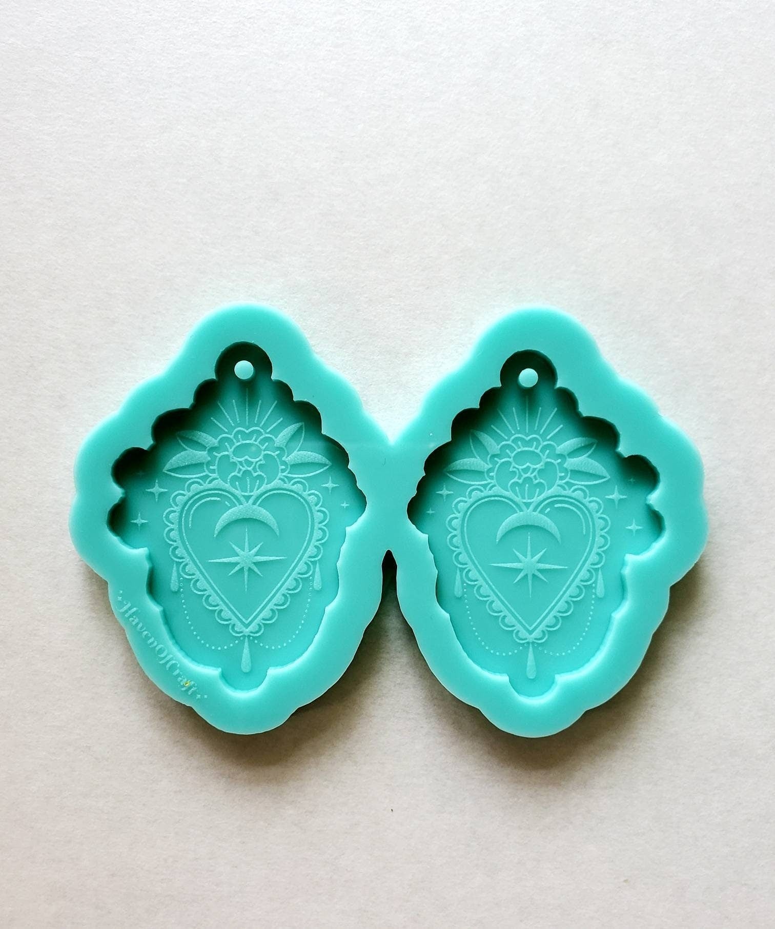 Made to Order - Celestial heart Shiny Silicone Earring Mold- Made with Acrylic Blanks