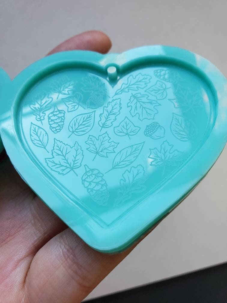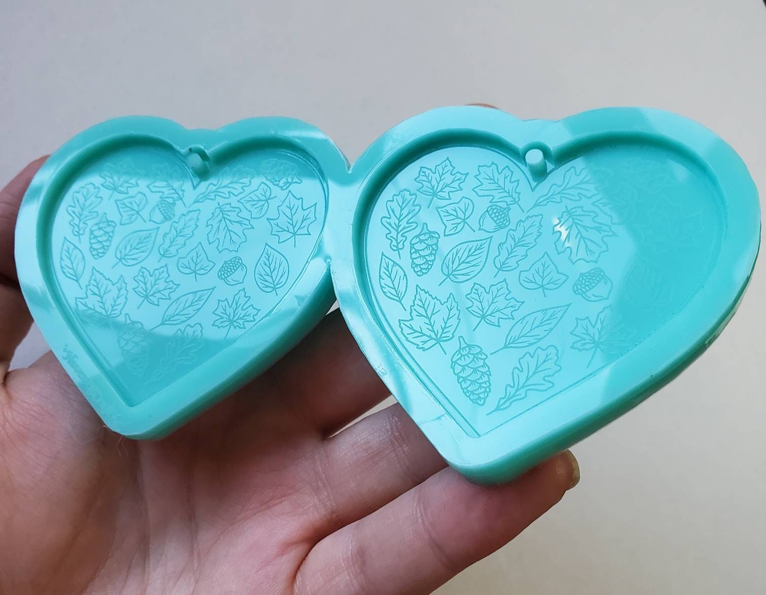 Made to order - engraved leaf, pine cones and acorn heart shiny earring silicone mold - made with acrylic blank