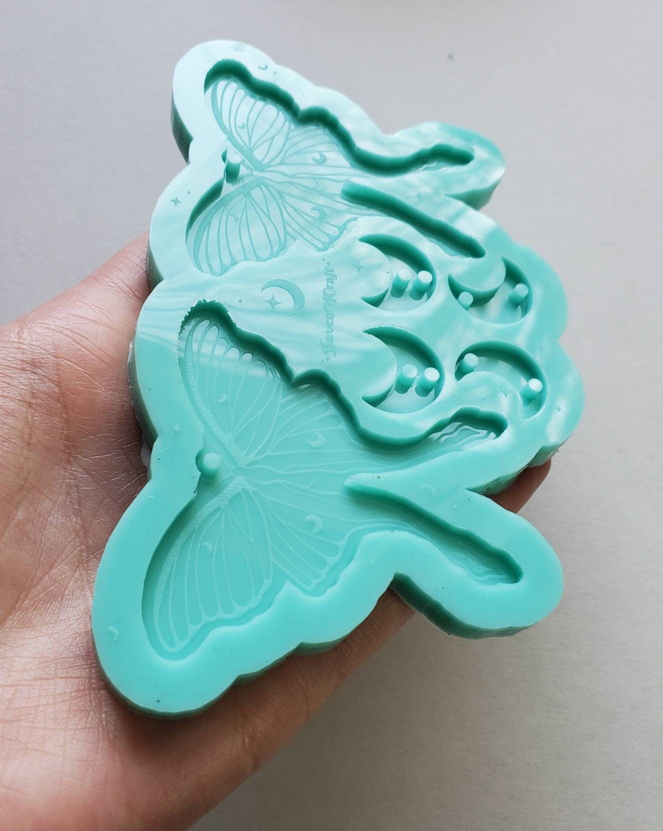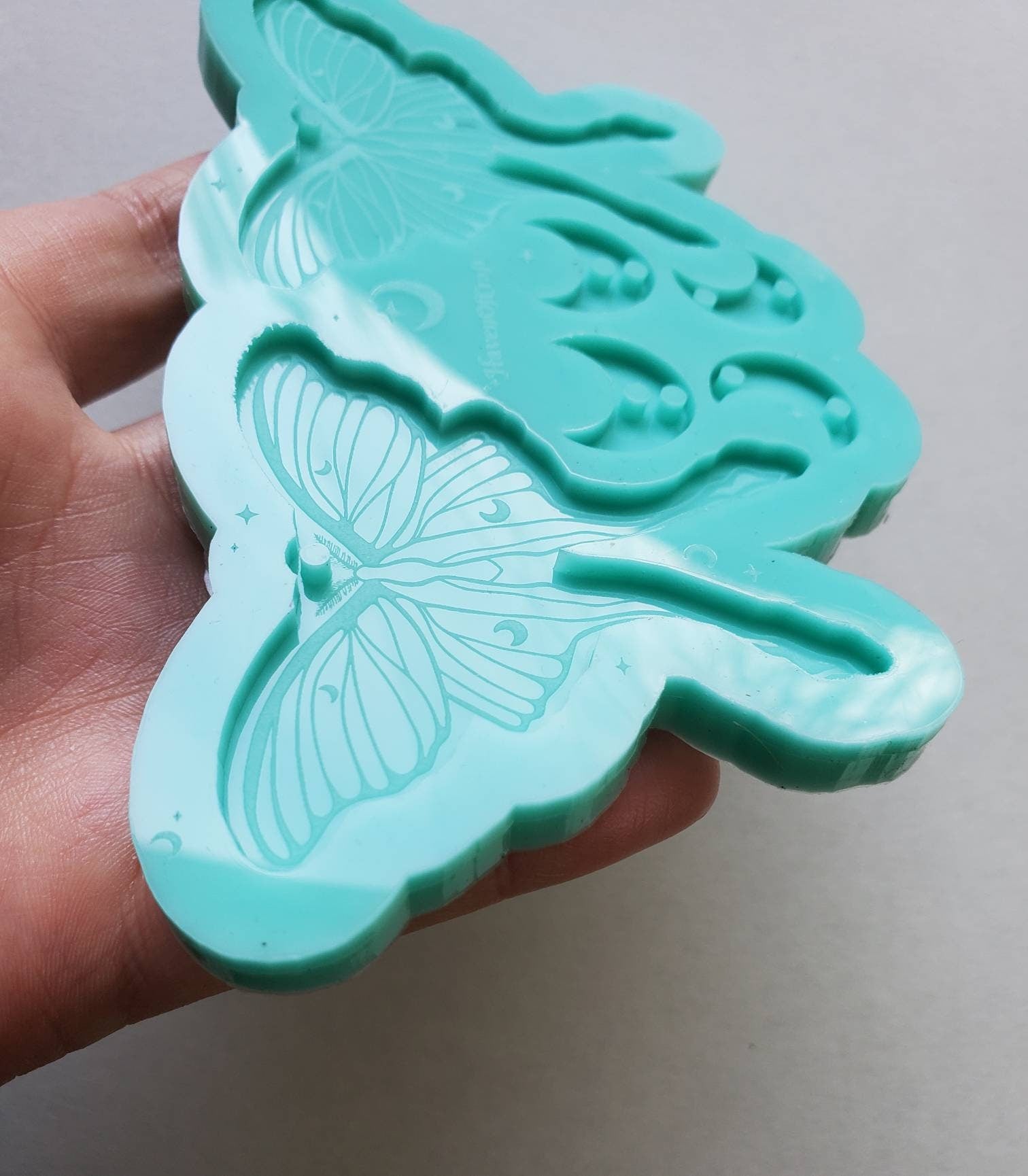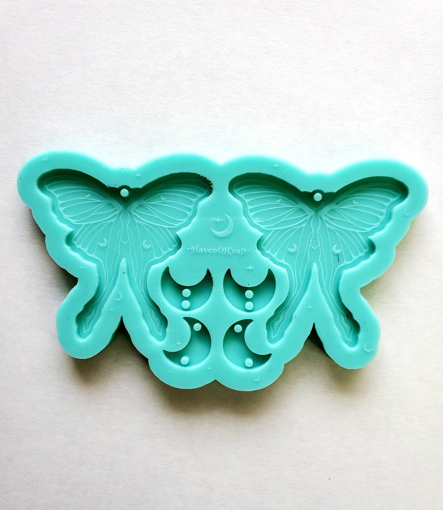 Made to order - Luna moth and moon earring silicone mold -shiny silicone mold