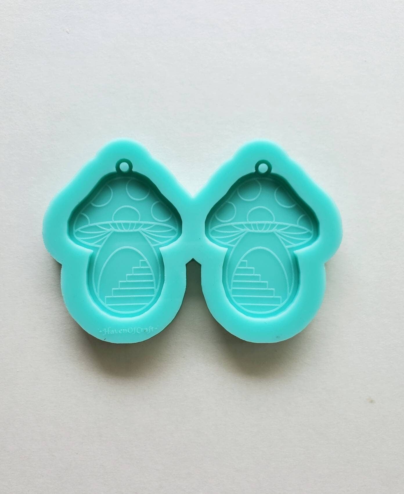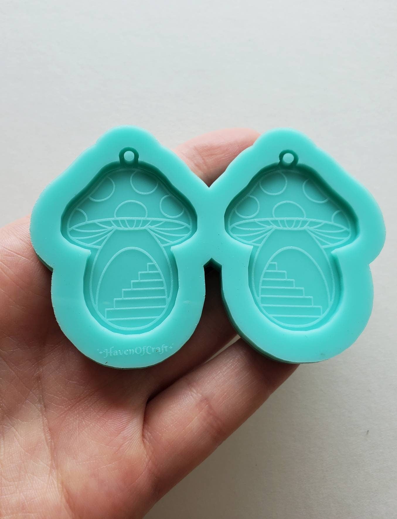 Made to order - Mushroom Home shiny earring silicone mold - made with acrylic blank