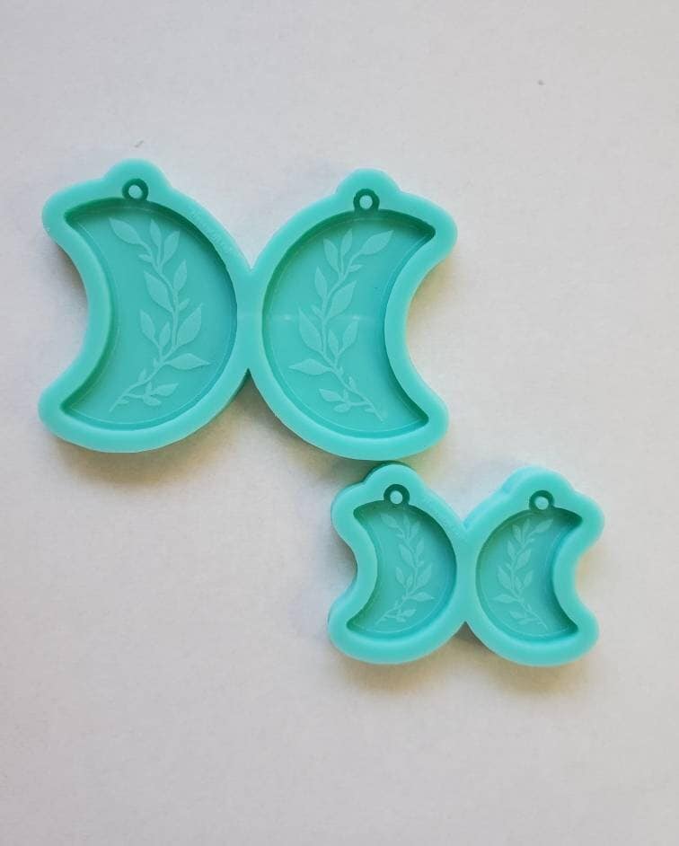 Made to order -Shiny moon with leafs earring mold- 2 size available