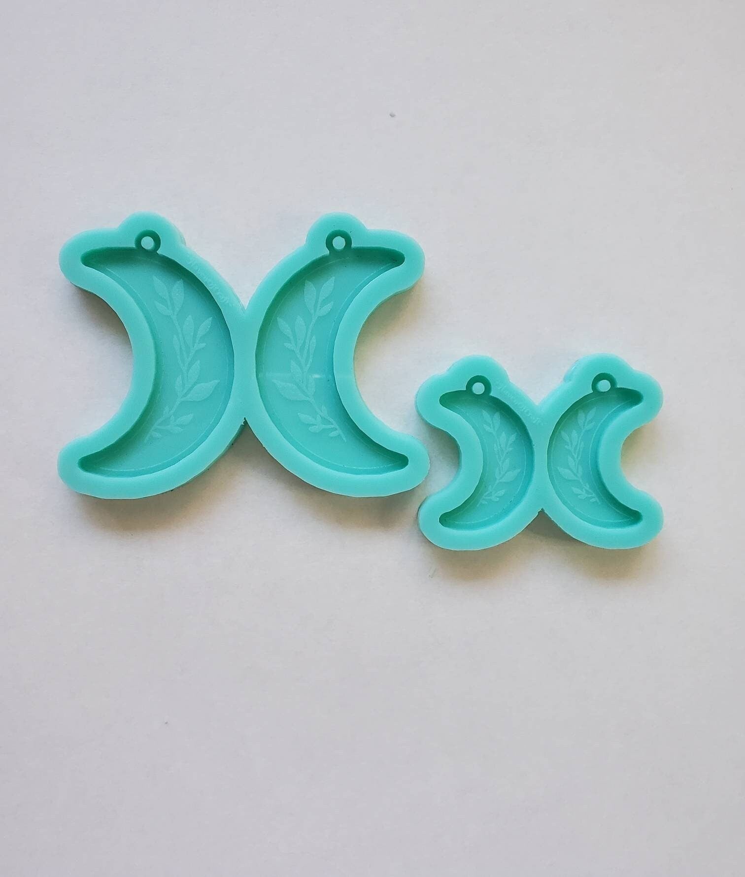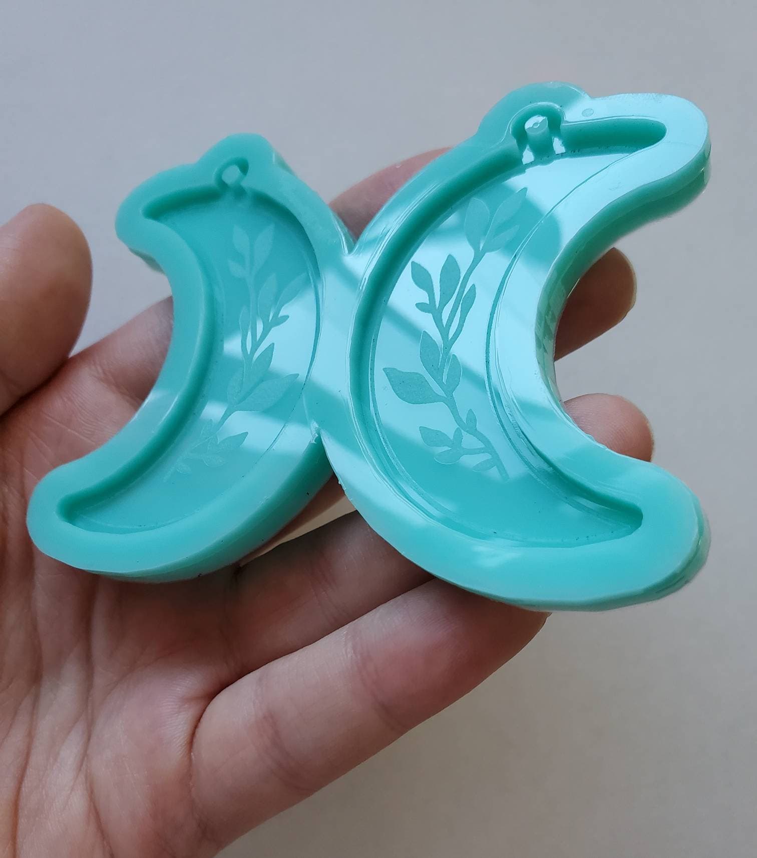 Made to order -Shiny thin moon with leafs earring mold- 2 size available