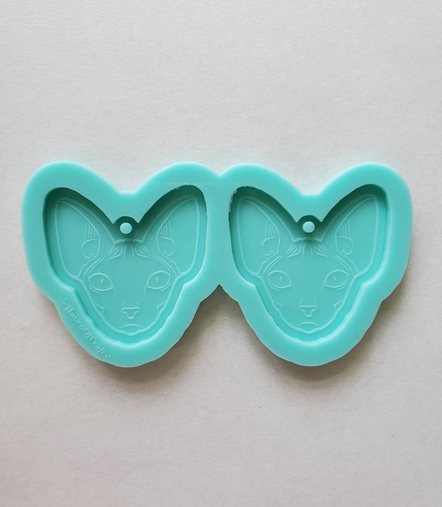 Made to Order -Sphynx cat face Shiny Silicone Earring Mold- Made with Acrylic Blanks
