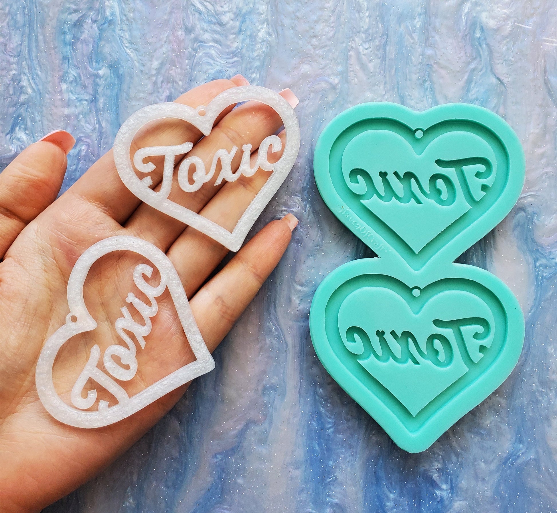 Made to Order - Toxic Heart Shiny Silicone Earring Mold- Made with Acrylic Blanks